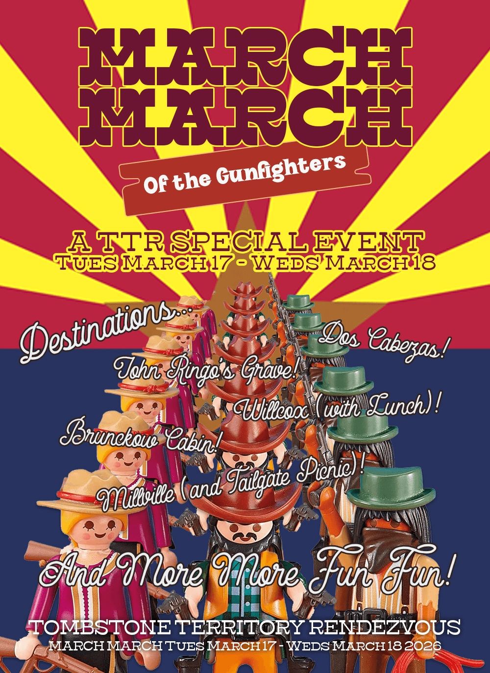 Join us in "Too Tough To Die" Tombstone, AZ for an amazing History Inspired field trip. We will spend two days exploring gunfight sites on our March March of the Gunfighters event through parts of Cochise County.